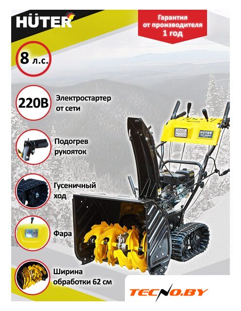 самоходный, бензиновый двигатель 8 л.с., захват 62x54 см