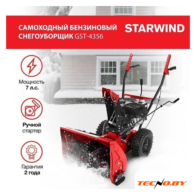 самоходный, бензиновый двигатель 5150 Вт 7 л.с., захват 56x52 см, выброс на 12 м