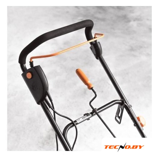 ручной, аккумуляторный двигатель 500 Вт, захват 33x17 см, выброс на 5 м
