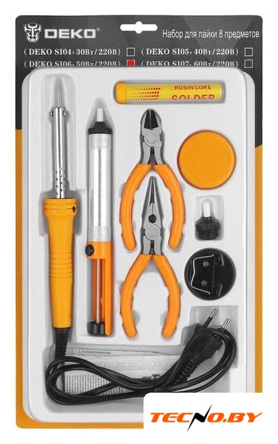 | Комплектация | паяльник - 1 шт.подставка под паяльник - 1 шт.экстрактор припоя - 1 шт.сменный наконечник экстрактора припоя - 1 шт.канифоль - 1 шт.припой спиралью - 1 шт.бокорезы - 1 шт.тонкогубцы - 1 шт. |