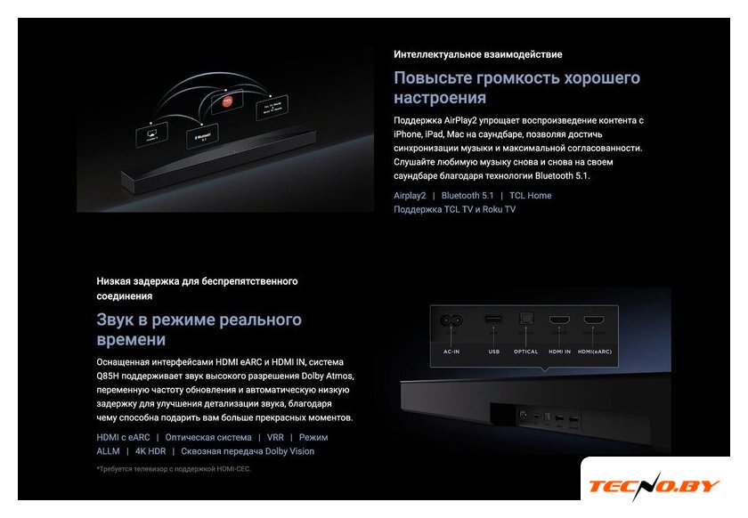 | Состав аудиосистемы | звуковая панель, беспроводной сабвуфер, тыловые колонки |