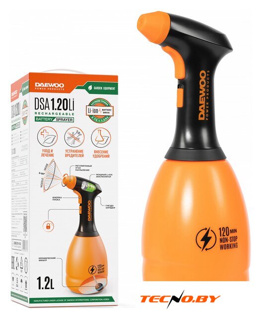 Аккумуляторный опрыскиватель Daewoo Power DSA 1.20Li — это идеальное решение для ухода за растениями, которое объединяет в себе компактность и функциональность. С объемом резервуара 1.2 литра и расходом жидкости 0.4 литра в минуту, он позволяет быстро и равномерно обработать зеленые насаждения. Техника предназначена для транспортировки в руках, что особенно удобно при уходе за растениями на балконе или в закрытых помещениях.