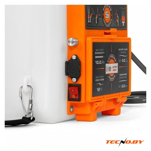 Ранцевый дизайн опрыскивателя позволяет распределять нагрузку равномерно по спине, обеспечивая комфорт даже при длительном использовании. Специально разработанная профессиональная система ремней помогает уменьшить нагрузку на плечи и спину, что делает использование устройства максимально удобным. Благодаря небольшому весу в 5 кг, аккумуляторный опрыскиватель не создает лишней тяжести.