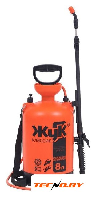 С объемом бака 8 литров, Жук ОП-207 идеально подходит для средних и больших участков, позволяя свести к минимуму частые заправки. Удобная транспортировка на плече с помощью прочного ремня делает использование опрыскивателя еще более комфортным, освобождая руки для маневренного управления штангой при обработке растений.