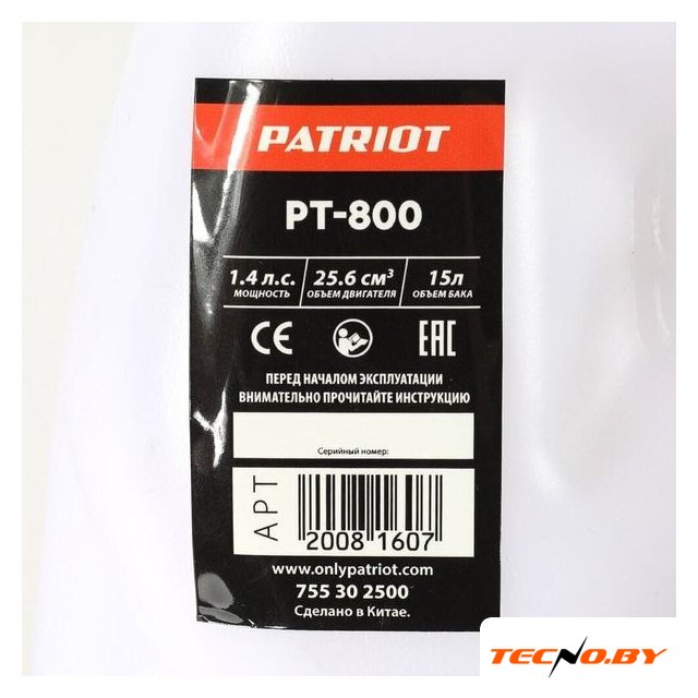 Patriot PT-800 поставляется в полном комплекте, который включает в себя распылитель, металлическую штангу-удлинитель, изогнутую штангу с тремя форсунками, прямую штангу с форсункой и прочие необходимые аксессуары для эффективной работы. В комплект входят также шланг высокого давления, шаровой кран, бачок для смешивания топлива, комплект резиновых прокладок и инструкция по эксплуатации.