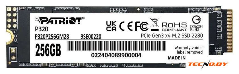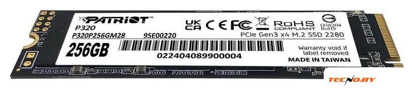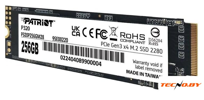 256 ГБ, M.2 2280, PCI Express 3.0 x4, микросхемы 3D TLC NAND