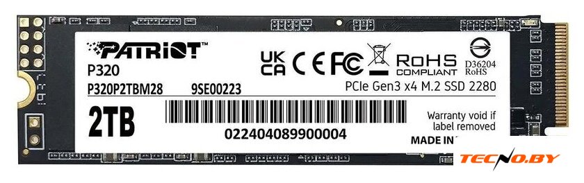 2 ТБ, M.2 2280, PCI Express 3.0 x4 (NVMe 1.3), контроллер Silicon Motion SM2263XT, микросхемы 3D TLC NAND, последовательный доступ: 2100/1650 МБайт/с, случайный доступ: 290000/260000 IOps