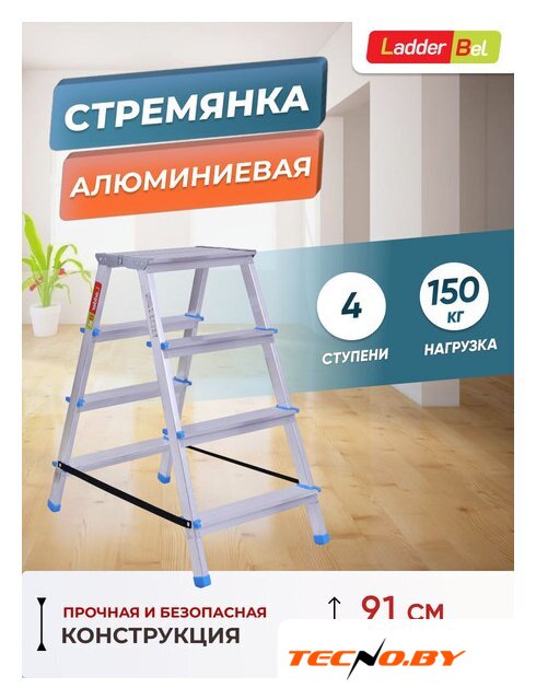 лестница-стремянка, 4 ступени, алюминий, верхняя площадка