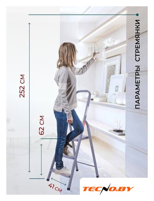 лестница-стремянка, 3 ступени, алюминий, верхняя площадка