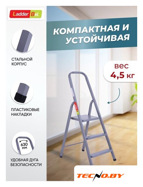 лестница-стремянка, 3 ступени, сталь, верхняя площадка