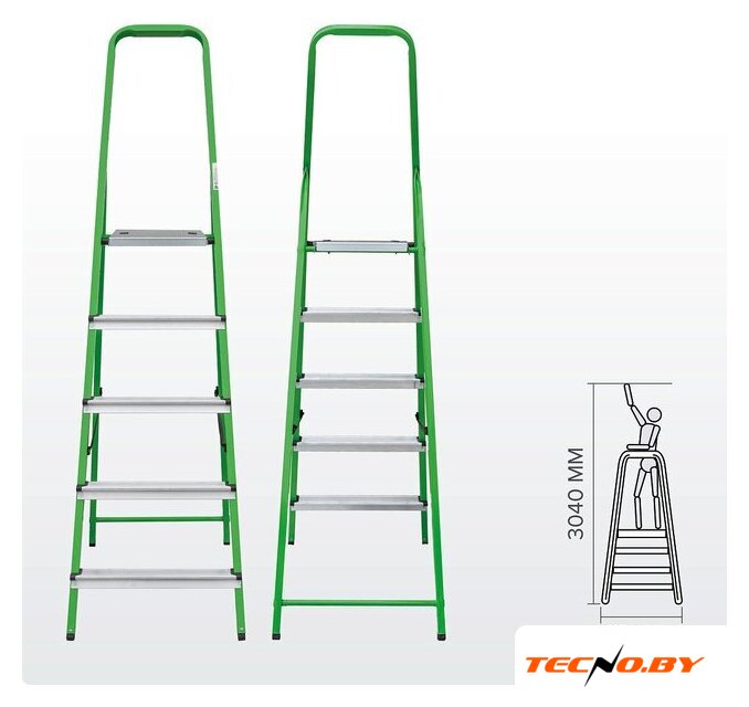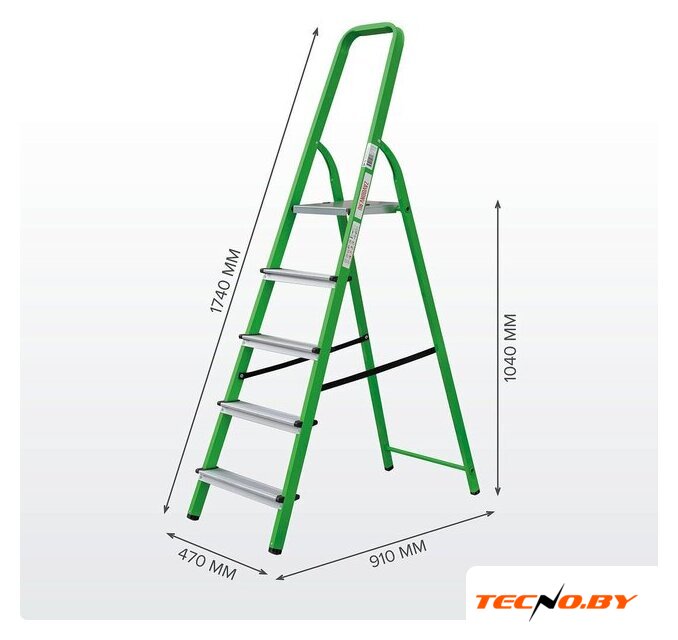 лестница-стремянка, 5 ступеней, сталь, верхняя площадка, поручни
