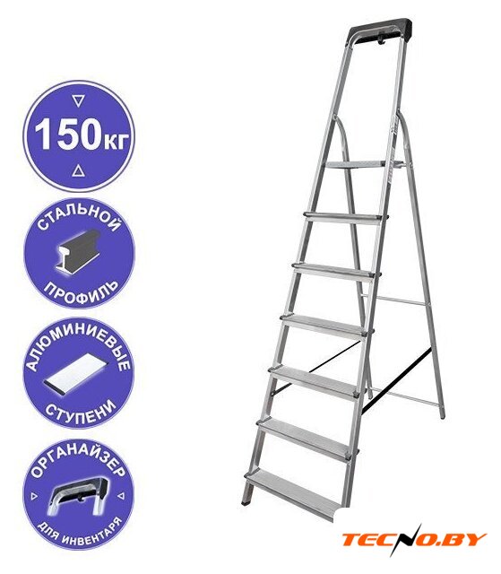 лестница-стремянка, 3 ступени, алюминий, верхняя площадка