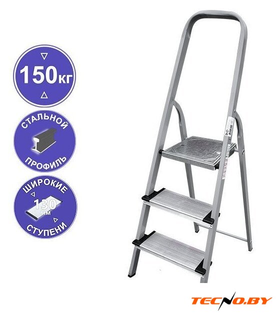 лестница-стремянка, 3 ступени, алюминий, верхняя площадка