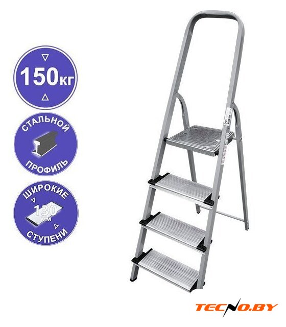 лестница-стремянка, 4 ступени, алюминий, верхняя площадка