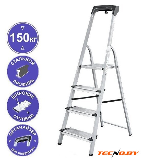 лестница-стремянка, 4 ступени, алюминий, верхняя площадка