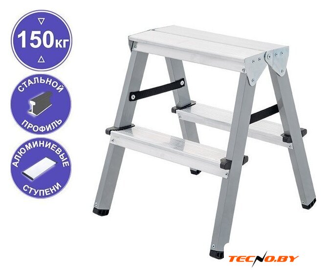 лестница-стремянка, 2 ступени, алюминий, верхняя площадка