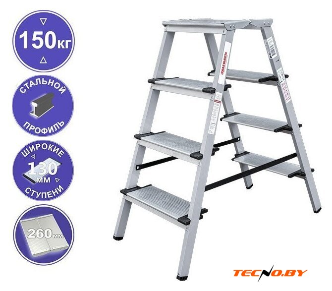 лестница-стремянка, 9 ступеней, алюминий, верхняя площадка