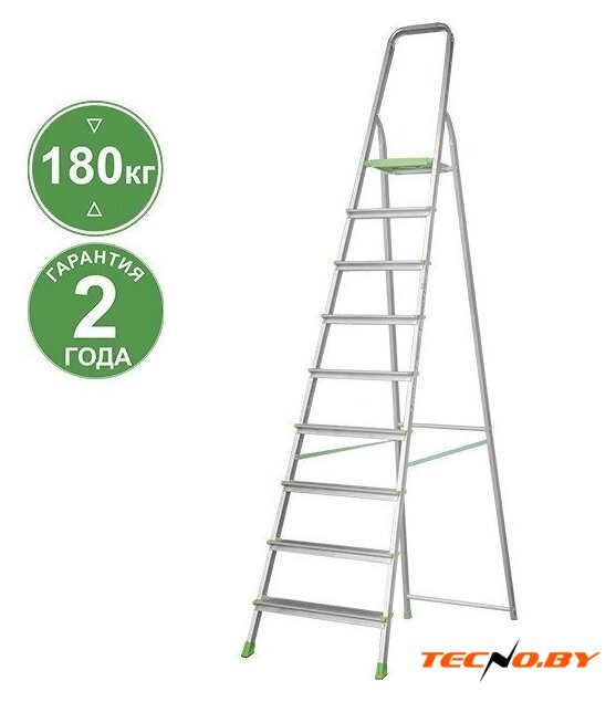 лестница-стремянка, 9 ступеней, алюминий, верхняя площадка