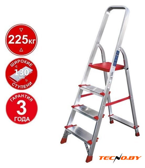 лестница-стремянка, 4 ступени, алюминий, верхняя площадка
