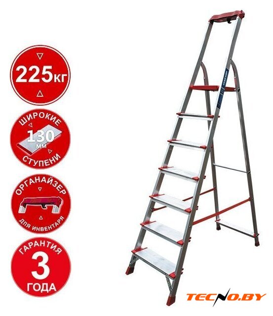 лестница-стремянка, 7 ступеней, алюминий, верхняя площадка