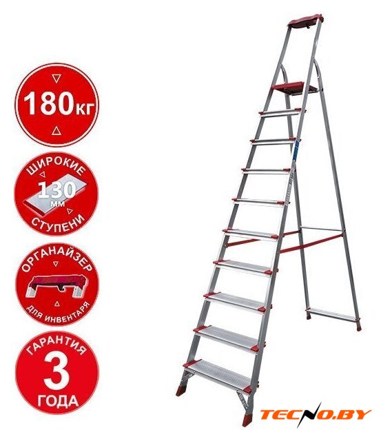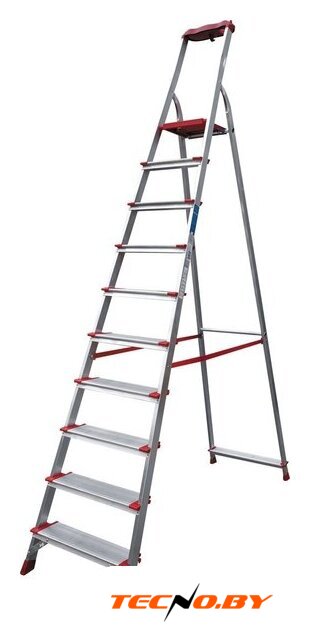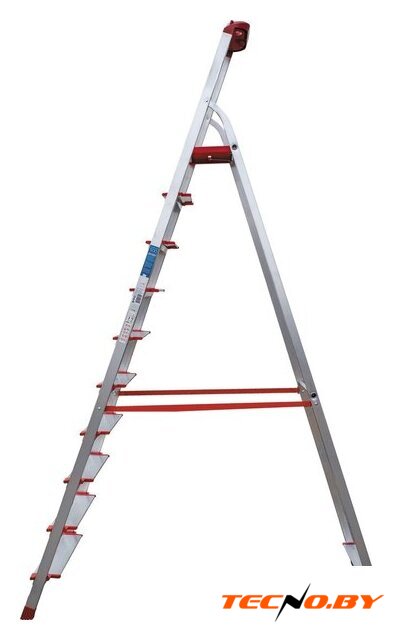 лестница-стремянка, 9 ступеней, алюминий, верхняя площадка, поручни
