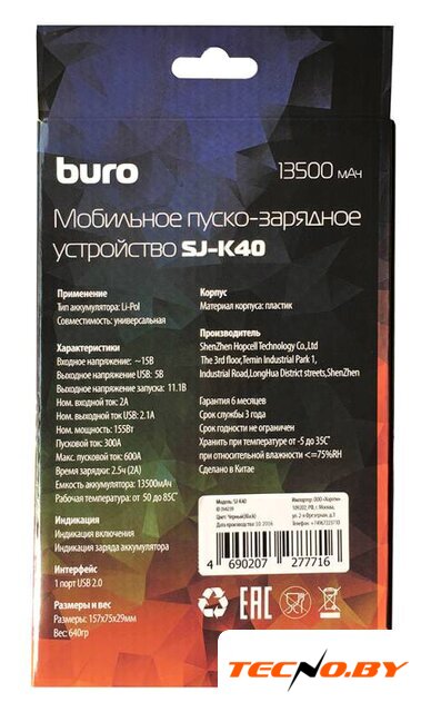 пусковое, ток зарядки: 2–3.5 А, масса: 0.78 кг