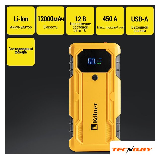 ёмкость встроенного аккумулятора: 12000 мА·ч, максимальный пусковой ток: 600 А