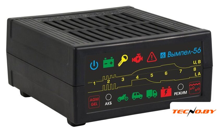 ёмкость заряжаемой батареи: 28–180 А·ч, ток зарядки: 4–9 А, масса: 6 кг