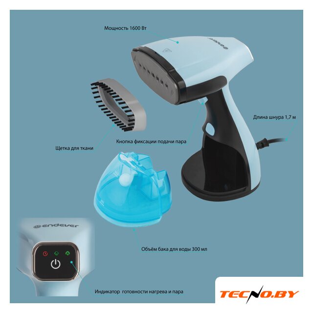 отпариватель, ручной, 1000 Вт, резервуар: 0.1 л
