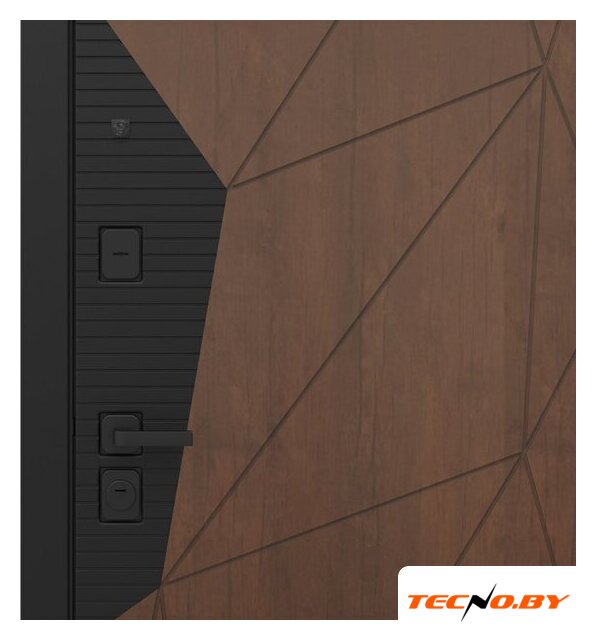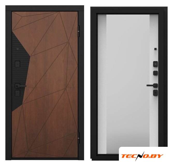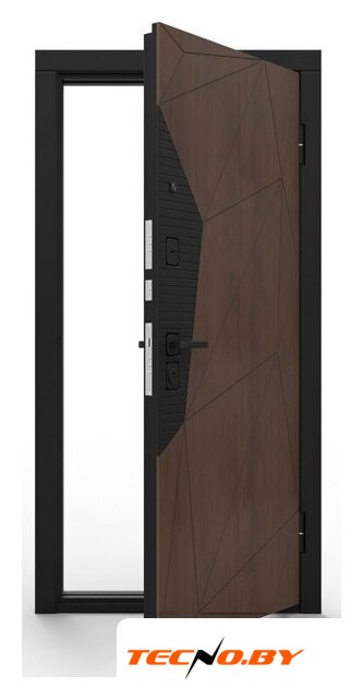 открытые петли 3 шт., два замка (цилиндровый + сувальдный), отделка: МДФ шпонированный (снаружи), МДФ шпонированный (внутри)
