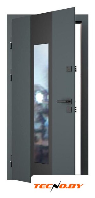 открытые петли 3 шт., два замка (цилиндровый + сувальдный), отделка: МДФ шпонированный (снаружи), МДФ шпонированный (внутри)