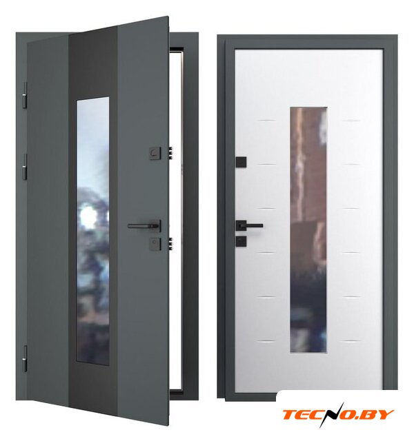металл: 10 мм, открытые петли 3 шт., два замка (цилиндровый + сувальдный), отделка: МДФ плёночный (снаружи), МДФ плёночный (внутри)