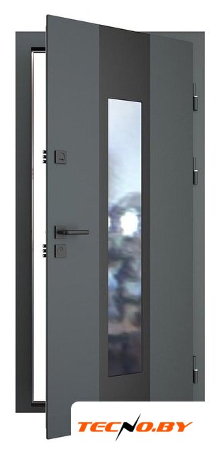 открытые петли 3 шт., два замка (цилиндровый + сувальдный), отделка: МДФ шпонированный (снаружи), МДФ шпонированный (внутри)