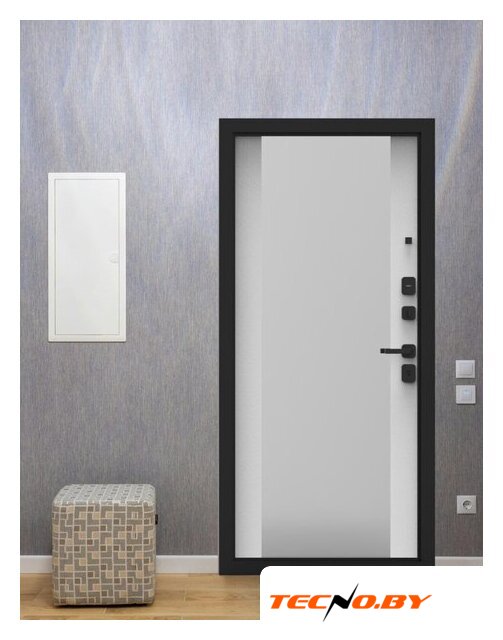открытые петли 3 шт., два замка (цилиндровый + сувальдный), отделка: МДФ плёночный (снаружи), МДФ плёночный (внутри)