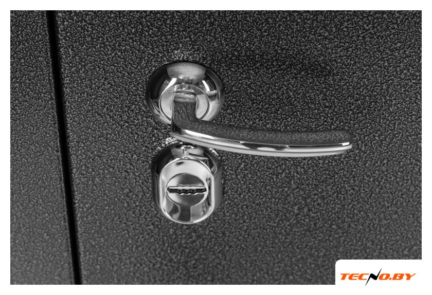 металл: 1 мм, открытые петли 2 шт., два замка (цилиндровый + сувальдный), отделка: МДФ шпонированный (снаружи), МДФ шпонированный (внутри)