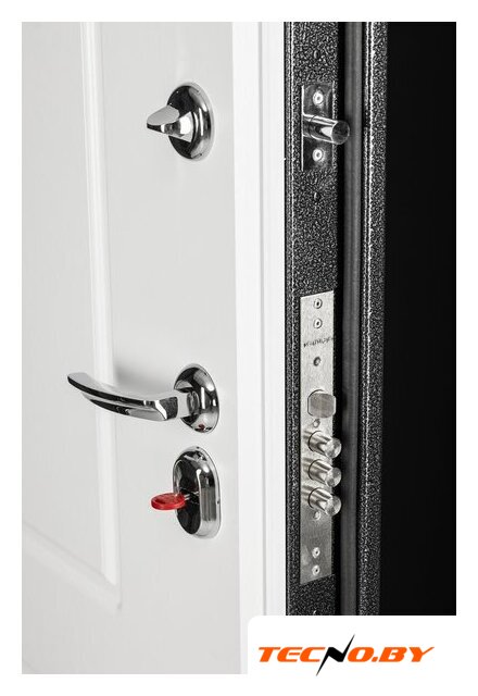 открытые петли 3 шт., два замка (цилиндровый + сувальдный), отделка: МДФ плёночный (снаружи), МДФ плёночный (внутри)