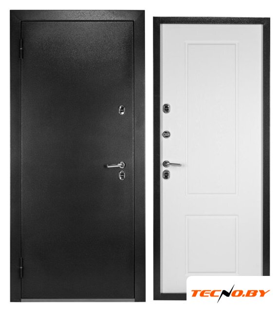 открытые петли 2 шт., два замка (цилиндровый + сувальдный), отделка: МДФ плёночный (снаружи), МДФ плёночный (внутри)