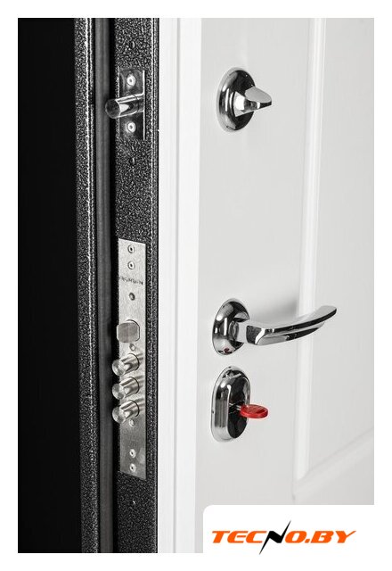 открытые петли 3 шт., два замка (цилиндровый + сувальдный), отделка: МДФ плёночный (снаружи), МДФ плёночный (внутри)