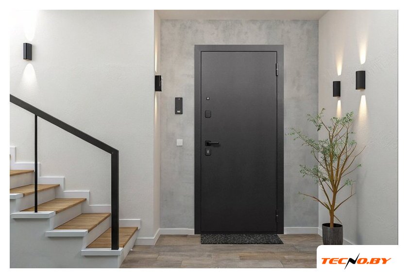 металл: 1 мм, открытые петли 2 шт., два замка (цилиндровый + сувальдный), отделка: металл (снаружи), МДФ шпонированный (внутри)