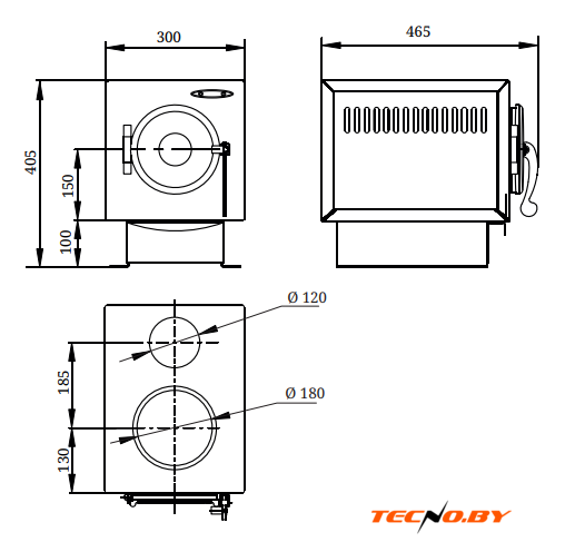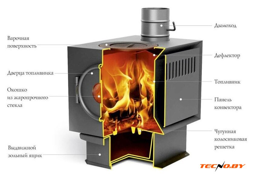 6 кВт, обогрев 100 м³, КПД 70%, корпус: сталь/чугун, топка: сталь