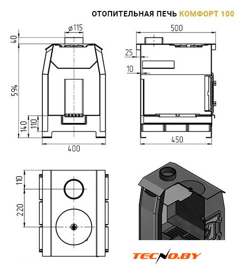 обогрев 70 м³, корпус: чугун, топка: чугун