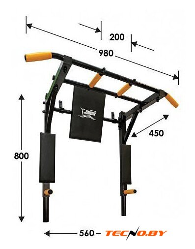 турник с брусьями, для занятий дома, установка на стену, максимальный вес пользователя: 200 кг, сталь, 98x80 см