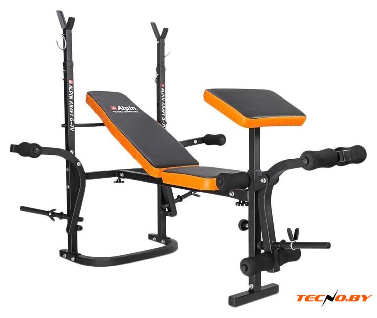 | Конструкция | стойка для штанги, скамья для жима штанги, парта Скотта, механизм для баттерфляя, блок для ног |