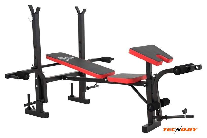 | Конструкция | стойка для штанги, скамья для жима штанги, парта Скотта, блок для ног |