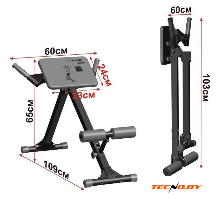 гиперэкстензия, для занятий дома, установка напольная, максимальный вес пользователя: 120 кг, сталь, 59x87 см
