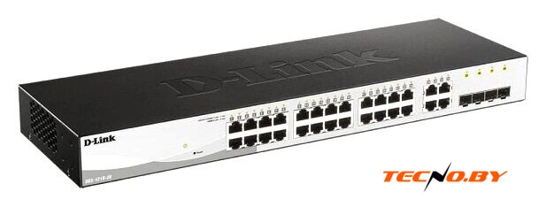управляемый 2-го уровня, стоечный, матрица 128 Гбит/с, green, 24xGbit, 4xSFP+