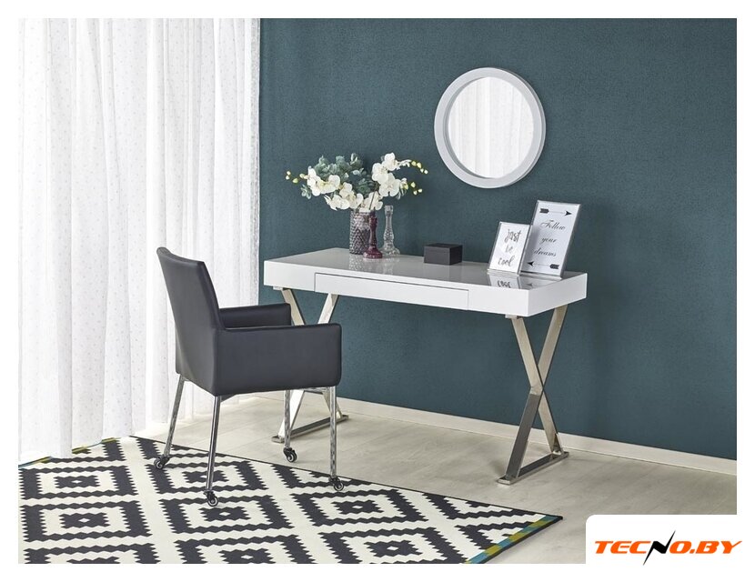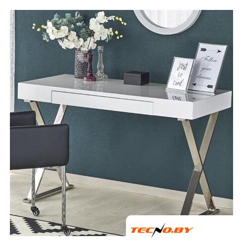 письменный стол, классический, прямоугольная форма, 1200×550 мм, материал: МДФ (столешница), хромированная сталь (опоры)
