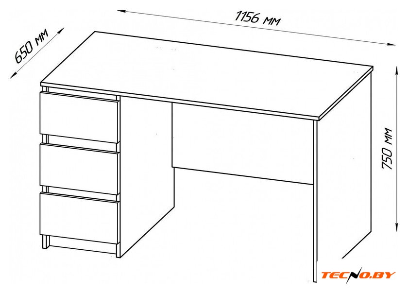 стол для работы, прямоугольная форма, 1156x650 мм, высота 750 мм, материал: ЛДСП (столешница), ЛДСП (опоры)