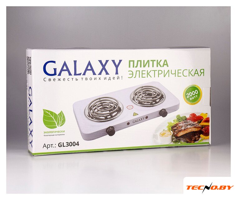 электрическая плита, 2 конфорки, 2000 Вт, 50×27.5×8 см