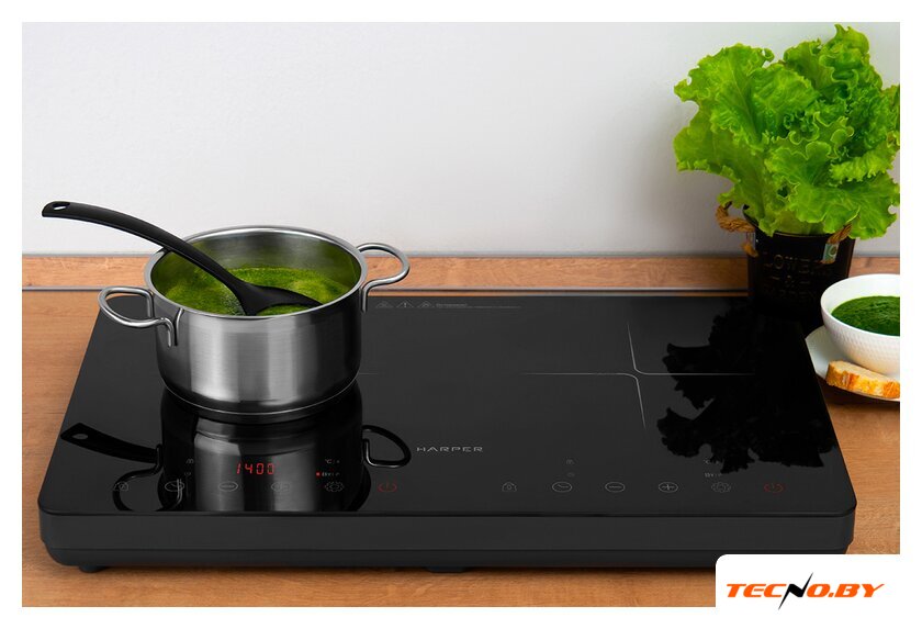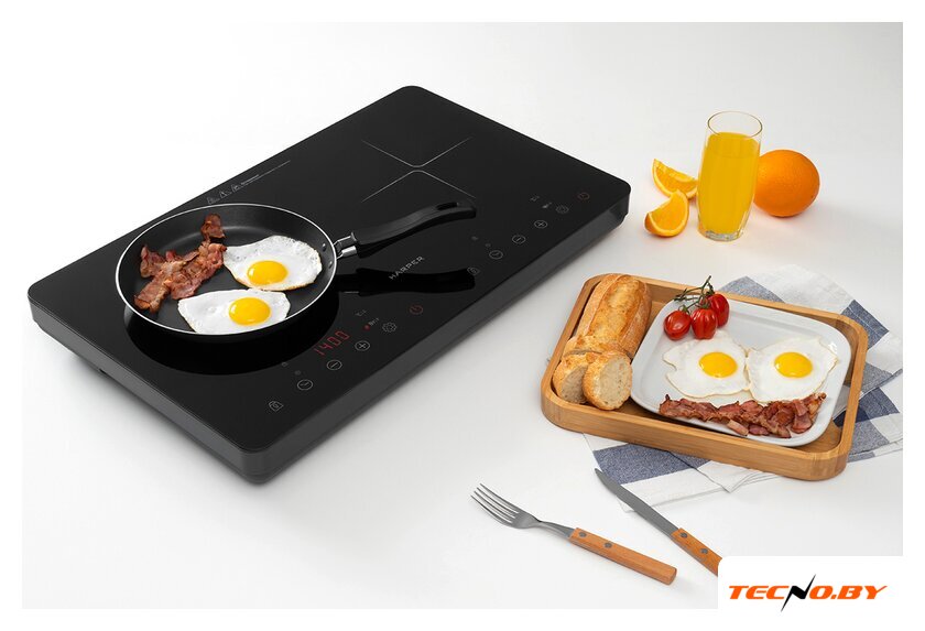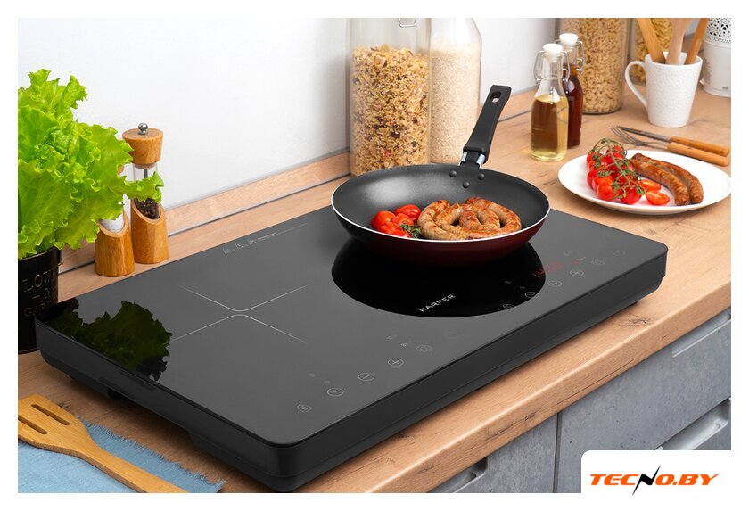 индукционная плита, 2 конфорки, 3400 Вт, 58×33×7.6 см